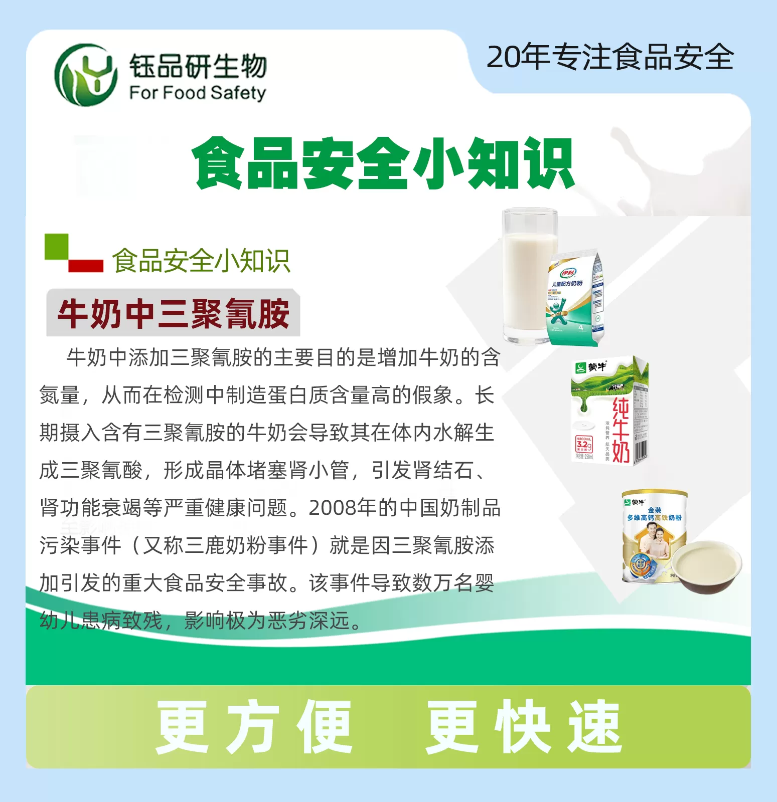 يتكون هذا المنتج من مبدأ immunochromatography الذهب الغروية تثبيط تنافسية للكشف عن بقايا الميلامين في عينات الحليب (باستثناء الزبادي). بعد إسقاط محلول العينة في فتحة عينة بطاقة الكشف ، يرتبط الميلامين الموجود في محلول العينة بالجسم المضاد القياسي الذهبي ، وبالتالي يمنع الجسم المضاد القياسي الذهبي من الارتباط بمترافق الميلامين على غشاء السليلوز. عندما يكون محتوى الميلامين في محلول العينة أكبر من حد الكشف ، لا يظهر خط الكشف T اللون ، وتكون النتيجة إيجابية ؛ عندما يكون محتوى الميلامين في محلول العينة أقل من حد الكشف ، يظهر خط الكشف T باللون الأحمر الأرجواني ، والنتيجة سلبية.