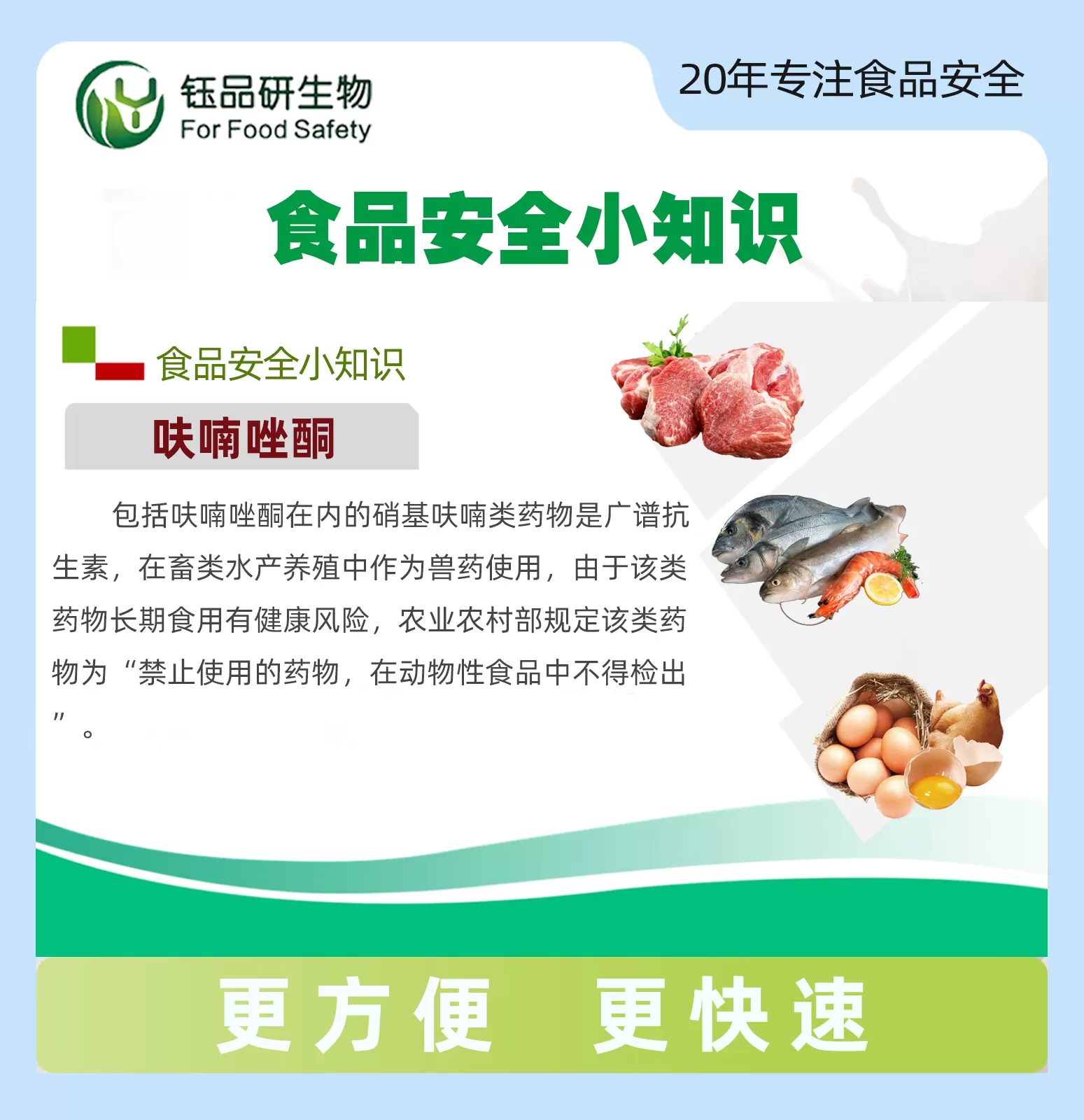 This product is made of the principle of competitive inhibition colloidal gold immunochromatography for the detection of furazolidone metabolite residues in tissue samples (chicken, duck, fish, shrimp). The whole detection process takes 2 hours and is suitable for all kinds of enterprises and testing institutions.