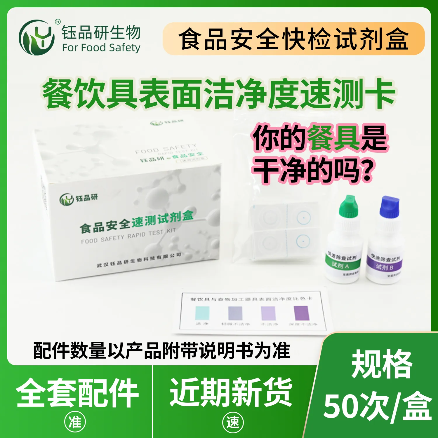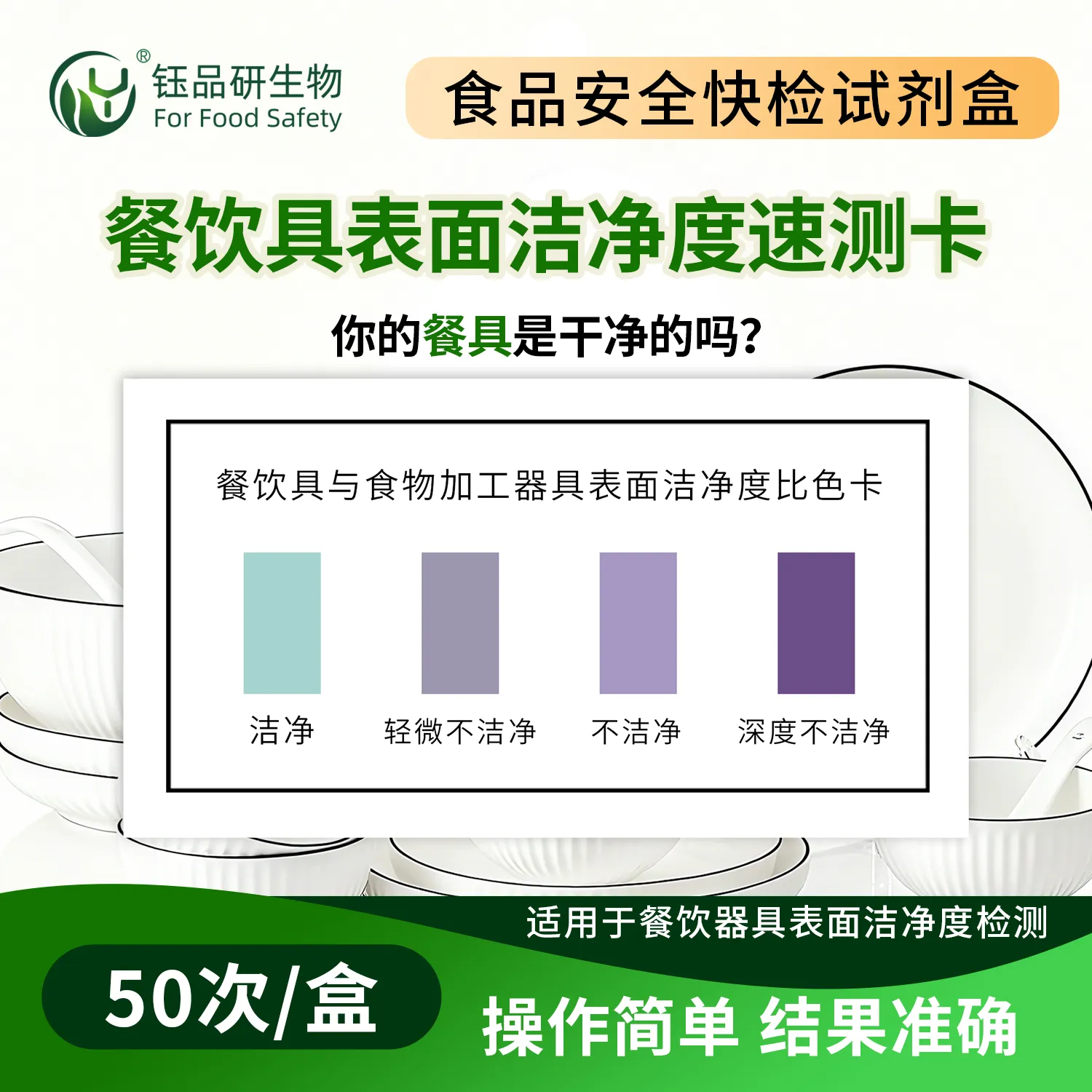 武汉钰品研生物推出餐饮具表面洁净度速测卡,基于蛋白质、糖类等残留物质与特定试剂的显色反应原理,借颜色变化快速判断洁净程度。操作简便,无需专业设备,按指南在餐饮具表面 1010cm 范围擦拭,滴加试剂,短时间内即可出结果。餐饮具清洁不彻底易残留细菌滋生源,威胁健康。适用于餐厅、食堂、家庭厨房等场景,助力餐饮企业自检、监管部门抽检。咨询热线 13720286360,为用餐安全护航。...
