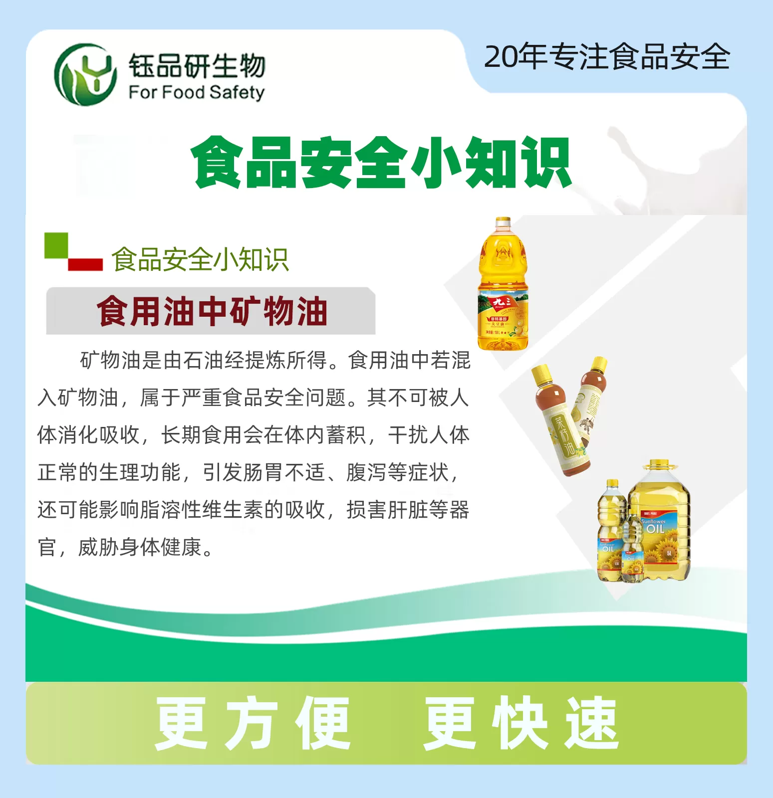 वुहान युपिनियन बायो ने खाद्य तेल में खनिज तेल के लिए एक तेजी से पता लगाने वाली किट शुरू की है, जो खाद्य तेल की सुरक्षा का पता लगाने के लिए एक कुशल और विश्वसनीय गारंटी प्रदान करने का हर संभव प्रयास करती है। किट विशेष रासा...