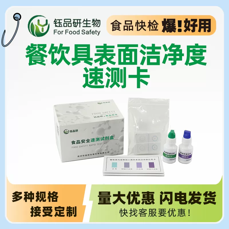 Utensili per la lavorazione commestibili Residui proteici principalmente dal contatto con il cibo, le proteine sono un focolaio per la crescita di microrganismi, ma anche una parte dei batteri batterici, se gli utensili per la lavorazione degli alimenti non sono completamente puliti, la proteina residua esposta all'ambiente esterno per lungo tempo può facilmente causare un gran numero di batteri, contaminando così il cibo a contatto con la schiena, causando così il verificarsi di intossicazione alimentare. Questo kit di test rapido viene utilizzato per il rilevamento rapido della pulizia superficiale degli utensili per la ristorazione.