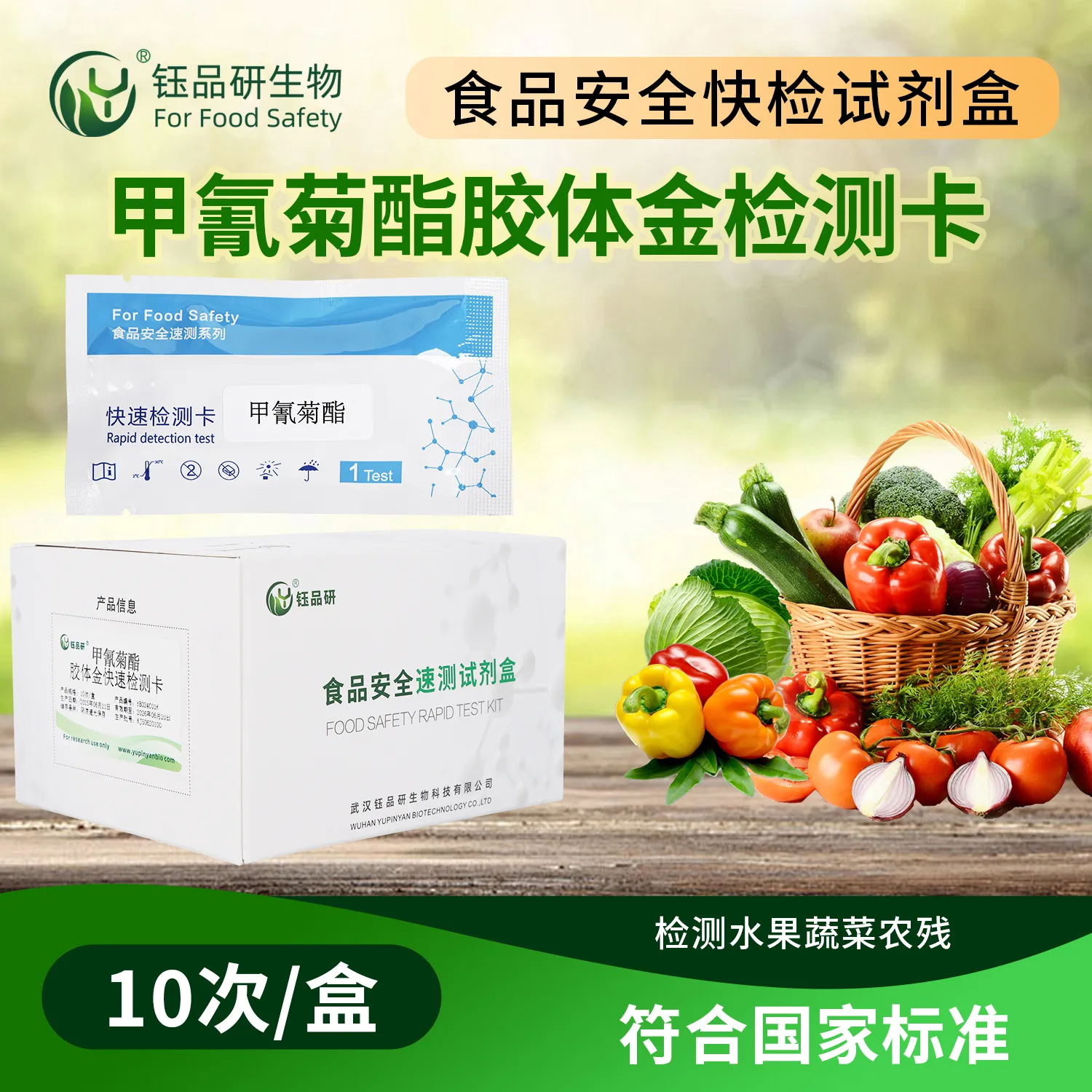 武汉钰品研生物作为专业厂家,推出甲氰菊酯胶体金快速检测卡,是可靠的食品安全检测快检试剂。该检测卡基于竞争抑制免疫层析原理,胶体金标记的特异性抗体与样本中甲氰菊酯竞争结合,通过检测线显色判断结果。操作简便,无需复杂设备,10-15 分钟出结果,精准检测相关样本中该农药残留。适用于农产品检测、监管抽检等场景,咨询热线 13720286360,为食品安全检测提供有力支持。...