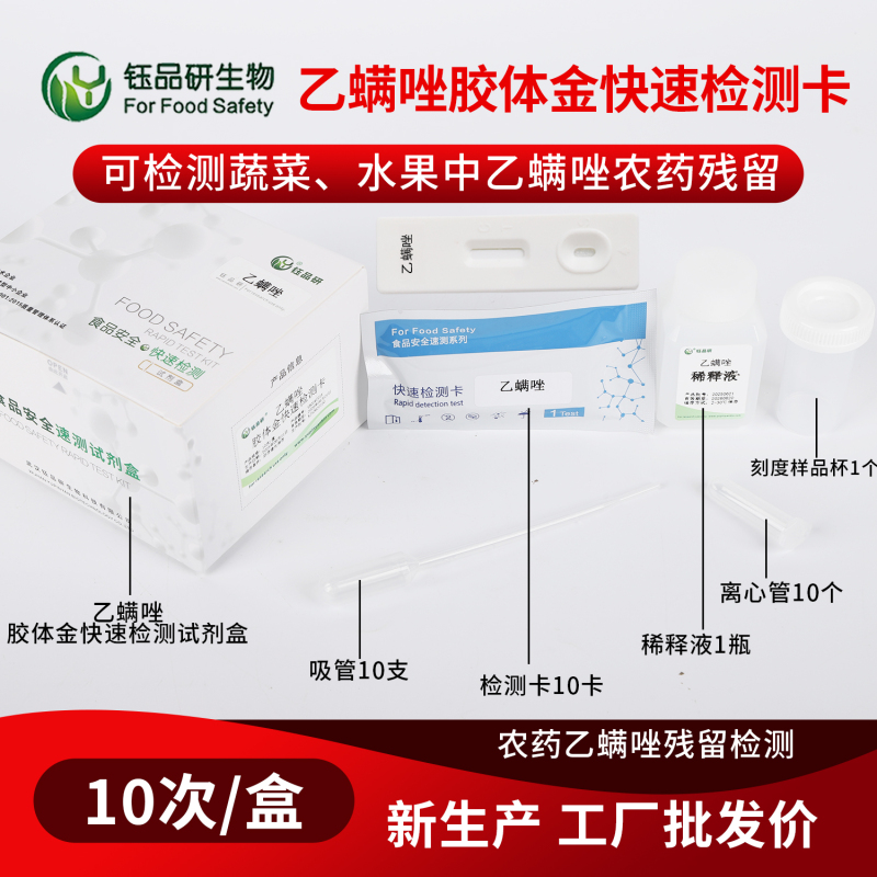 为快速准确筛查农产品中的乙螨唑农残,武汉钰品研生物研发了专业的食品安全快速检测试剂、试纸及胶体金检测卡等产品。这些检测工具操作简便、检测速度快,可帮助农业生产企业、监管部门及消费者在短时间内完成农残筛查,及时发现潜在风险,确保农产品从源头到餐桌的安全可控。
