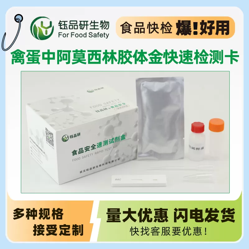武汉钰品研生物禽蛋阿莫西林(β- 内酰胺类)胶体金快检卡,基于竞争抑制免疫层析技术,禽蛋样本中阿莫西林与胶体金标记抗体结合,抑制其与检测线偶联物结合,借 T 线颜色变化,10 分钟内判残留情况。操作便捷,无需专业设备,简单处理样本滴加试剂即可。残留超标易致过敏、胃肠道不适,增强细菌耐药性。适用于禽蛋企业自检、监管抽检、农贸市场快检。咨询 13720286360,守护饮食安全。...
