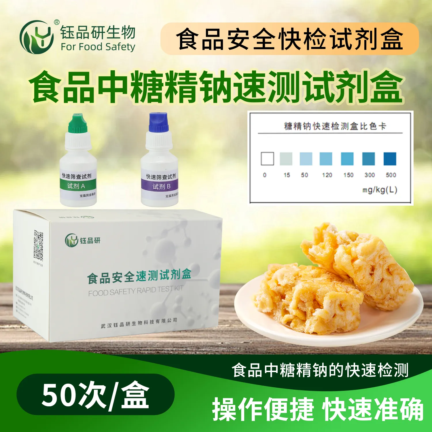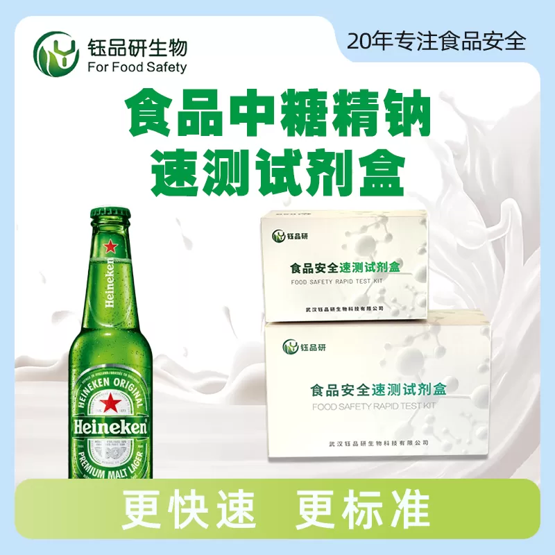武汉钰品研生物食品中糖精钠速测试剂盒,基于特定化学反应原理,通过试剂与样本中糖精钠反应产生颜色变化,依据颜色深浅快速判定含量。10 分钟内出结果,操作简便,无需专业设备,按说明处理样本、添加试剂即可。糖精钠是人工甜味剂,过量摄入可能引发肠胃不适,且无营养价值,我国对其在食品中的添加量有严格标准。适用于饮料、糕点、酱菜等食品企业自检、市场监管抽检、餐饮行业自查。咨询 13720286360,守护食品品质安全。...